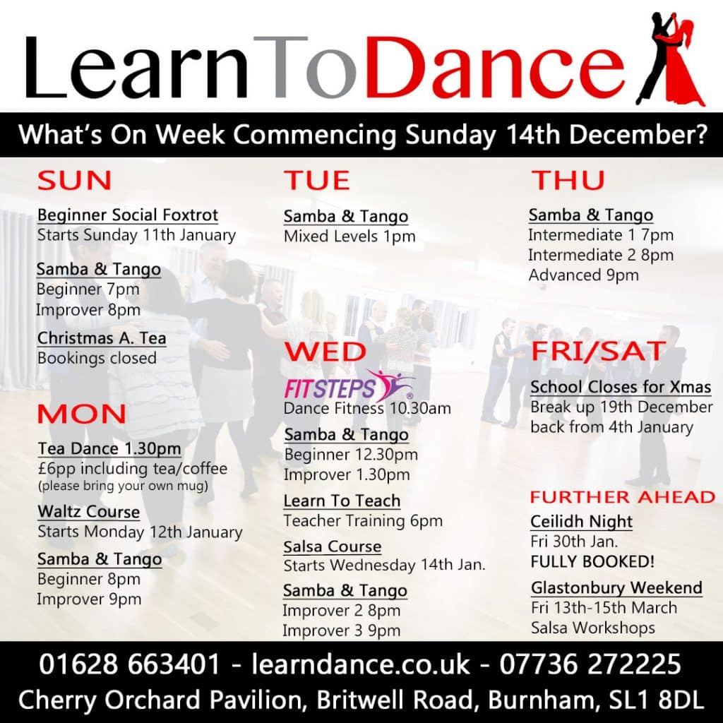 Learn To Dance will be closed for the Christmas period from 20th December.