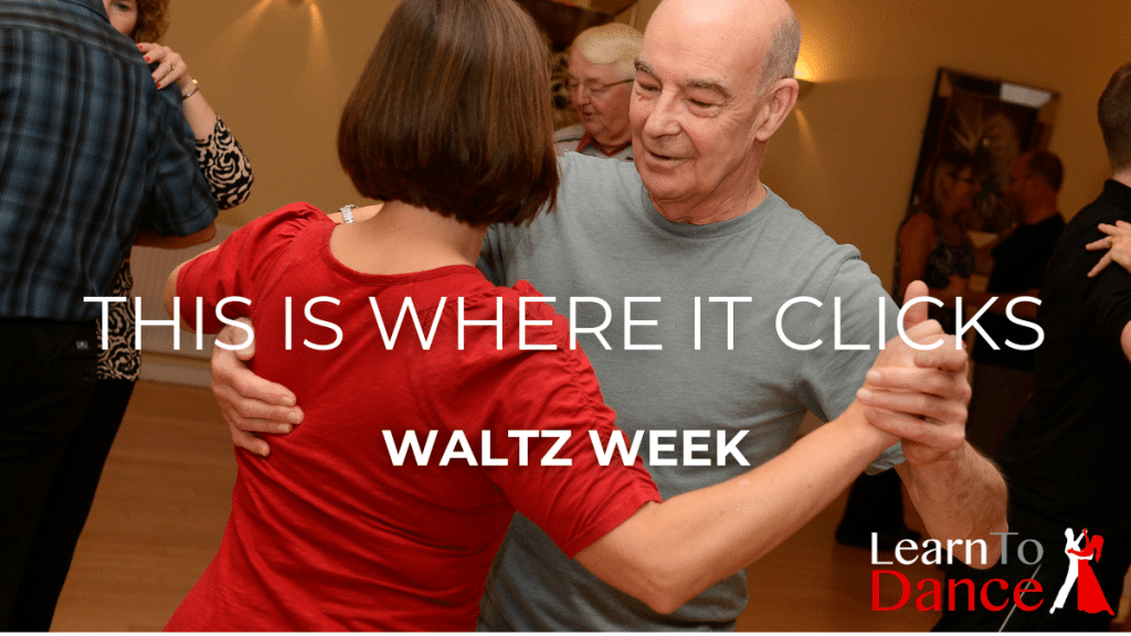 It's waltz week at Learn To Dance. The image shows a picture of a couple in a ballroom dance hold, with text overlaid saying "This is Where it Clicks" above "Waltz Week" and the Learn To Dance logo in the bottom right corner