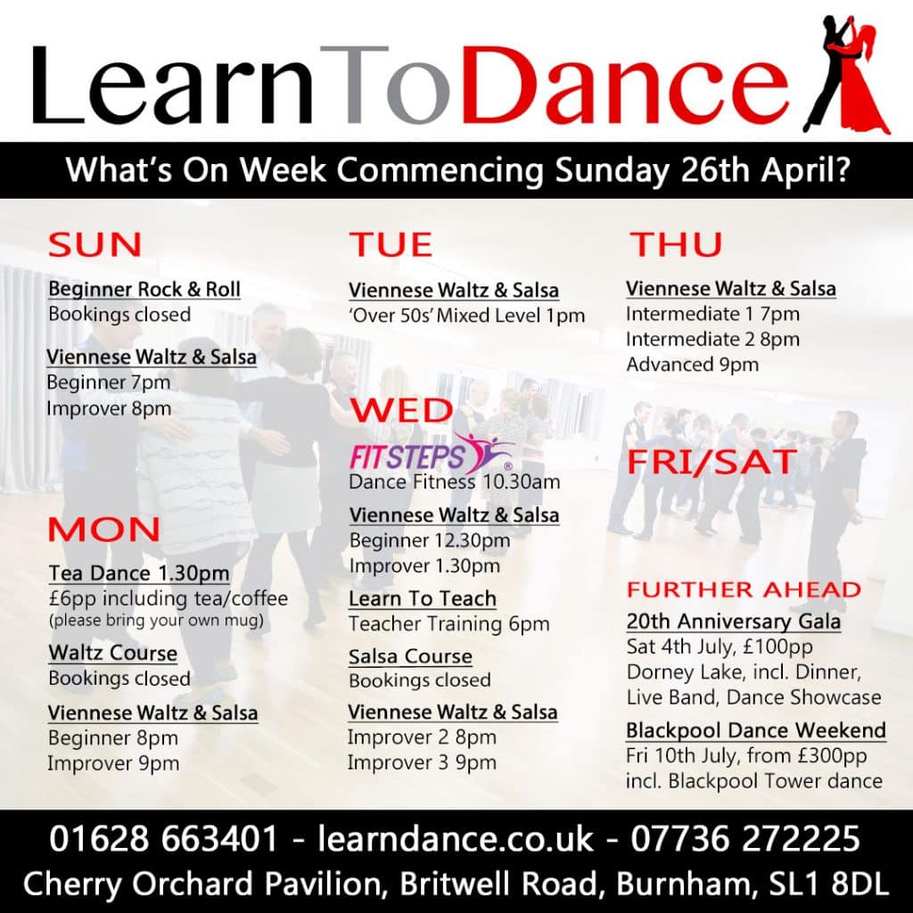 Dances covered will be Foxtrot and Samba, with a ‘Golden Age of Hollywood’ theme to the Saturday night.