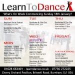 Here’s what’s on at Learn To Dance this week. Jive & Quickstep in our group classes plus don’t forget we have new courses starting from Sunday 11th January.