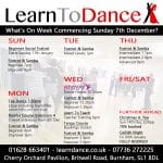 What’s on at Learn To Dance this week? Samba & Tango in our group classes plus our Christmas Afternoon Tea on Sunday afternoon. The school closes for Christmas on 19th December.