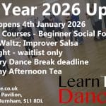 Here’s our New Year 2026 Quarterly Update showing you everything coming up over the next few months, including our Beginner Social Foxtrot, Improver Waltz and Salsa Courses; Ceilidh night; Glastonbury; Good Friday Afternoon Tea.